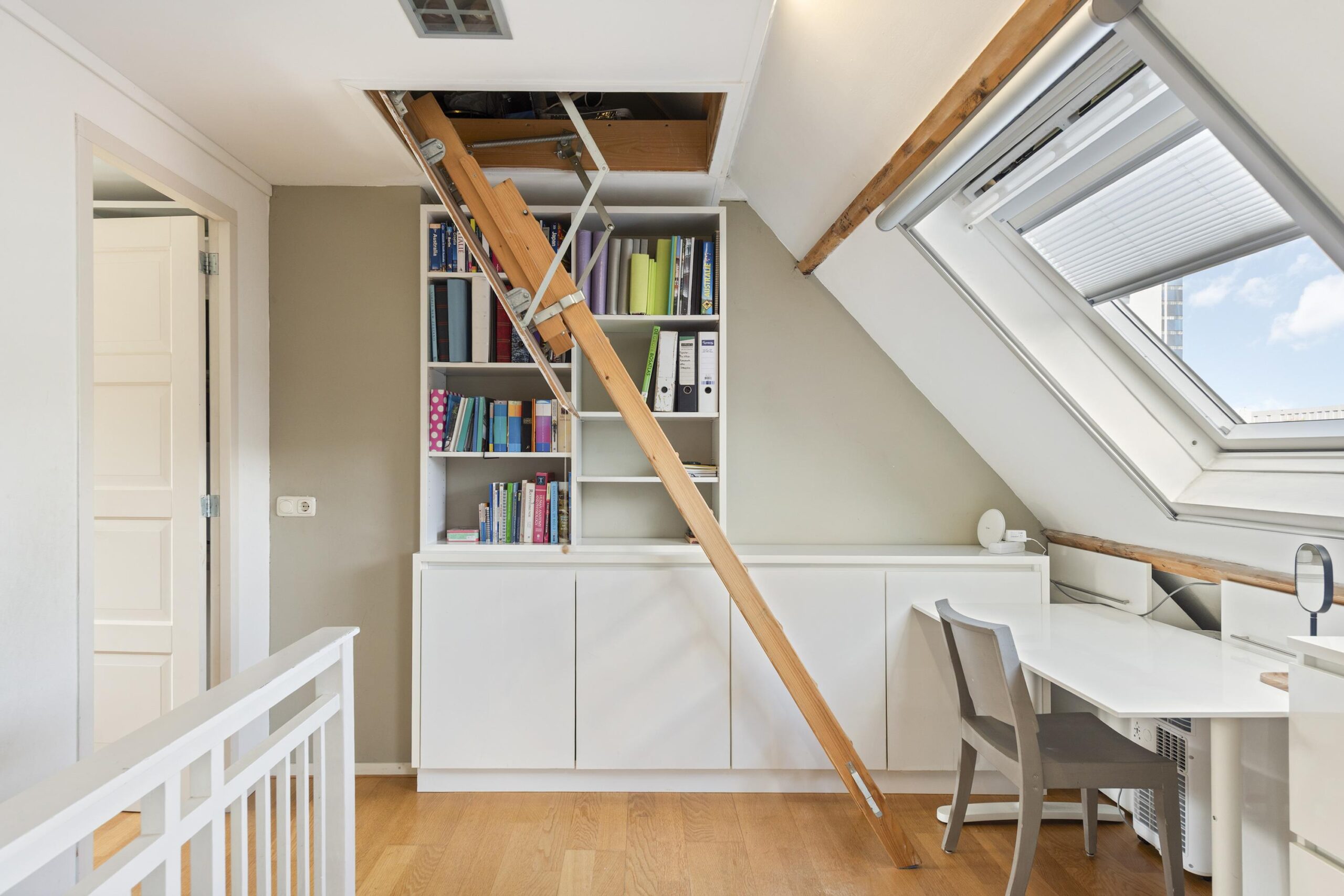 Vlizotrap naar de vliering met veel bergruimte en opstelplaats voor de c.v. ketel.