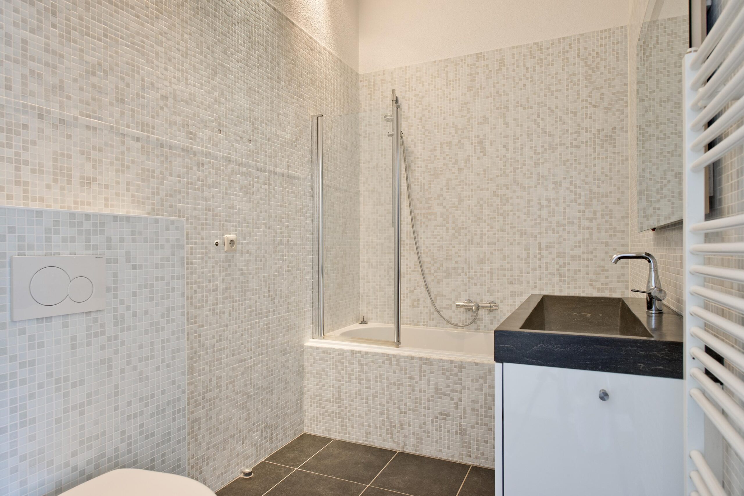 - Badkamer voorzieningen Ligbad, toilet, douche, wastafel, wastafelmeubel