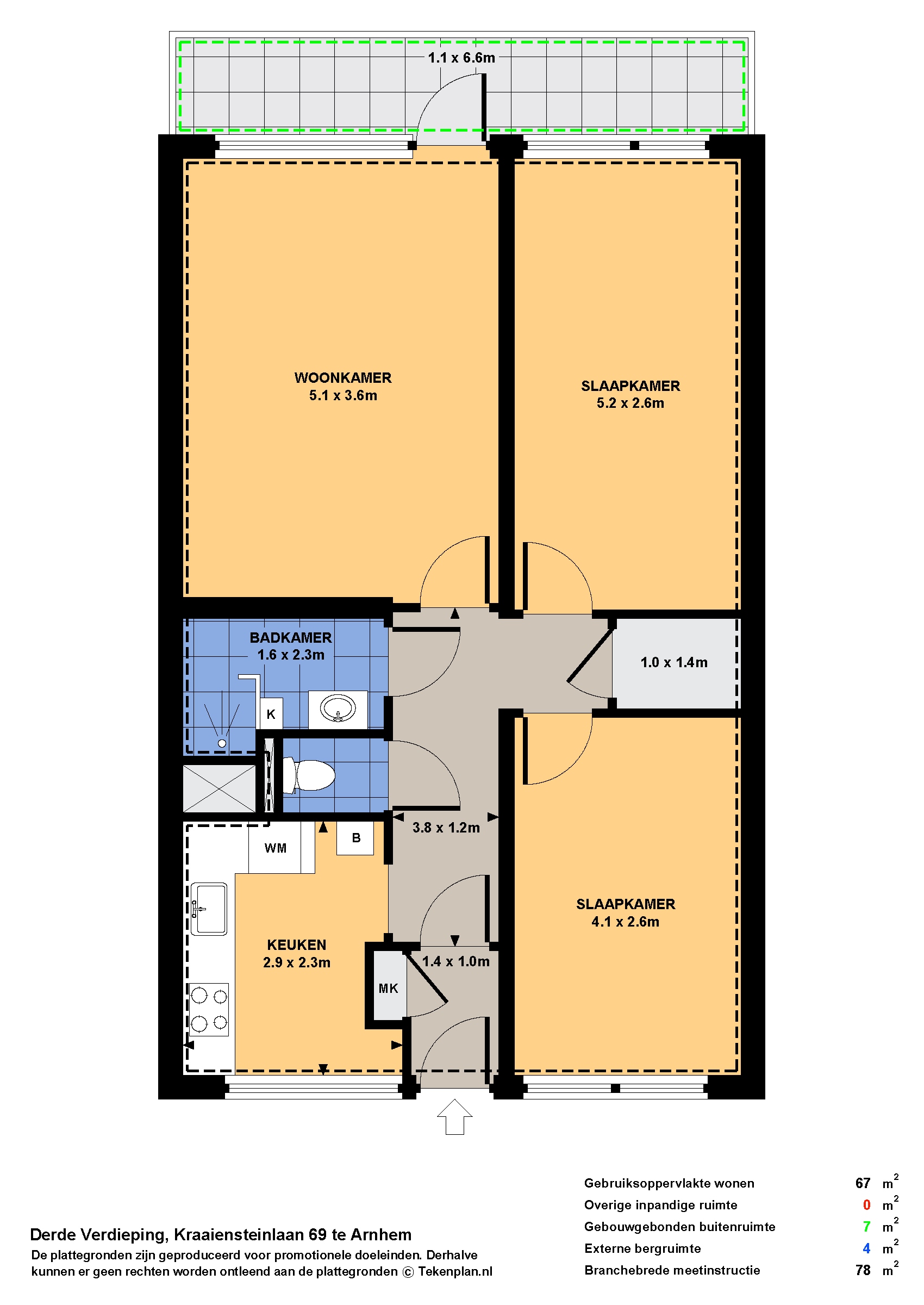 - Woonoppervlakte 67 m²
