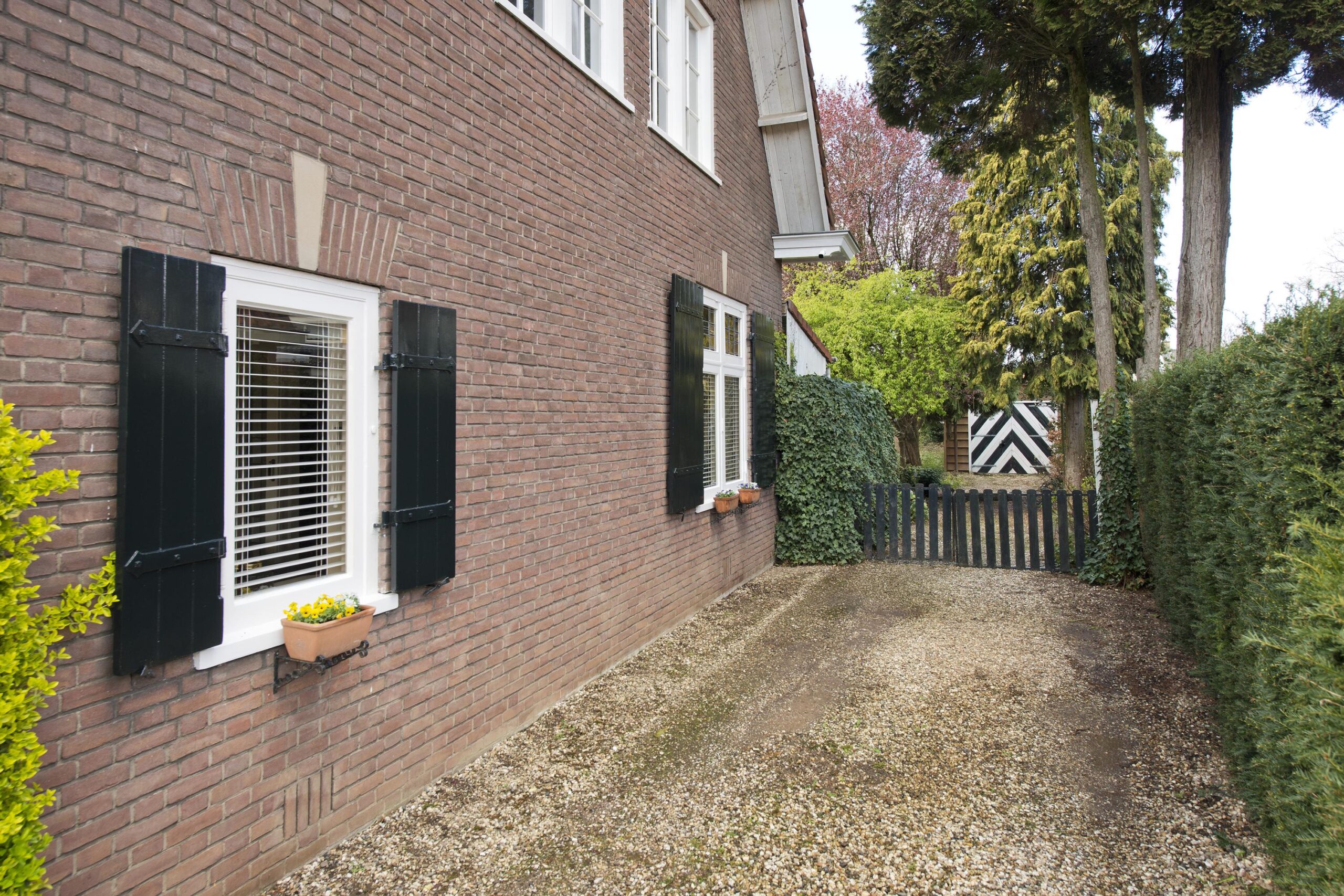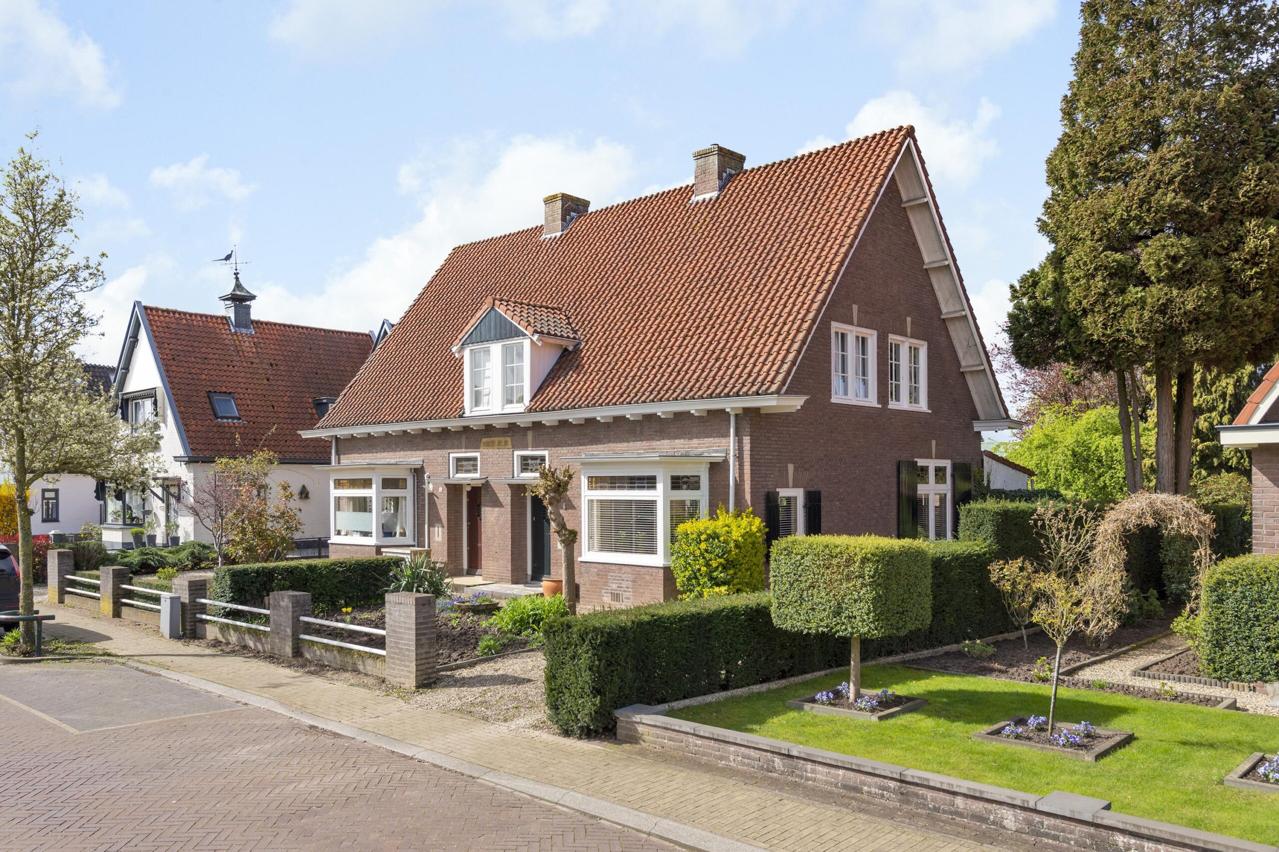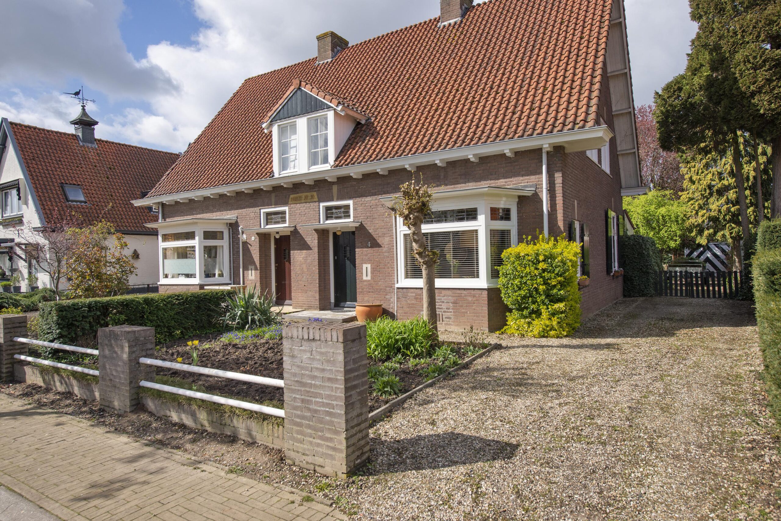 Deze bijzondere woning, gebouwd in 1939, ademt historie en klasse. Talrijke originele stijlelementen zijn met zorg behouden gebleven, waaronder de indrukwekkende woonkamer-en-suite met glas-in-lood schuifdeuren, authentieke schouwen, paneeldeuren en een originele servieskast in de keuken. Een uniek historisch detail vormt de letter ‘K’ in de voorgevel, een subtiele verwijzing naar de kelder, die tijdens de Tweede Wereldoorlog dienstdeed als schuilruimte.
