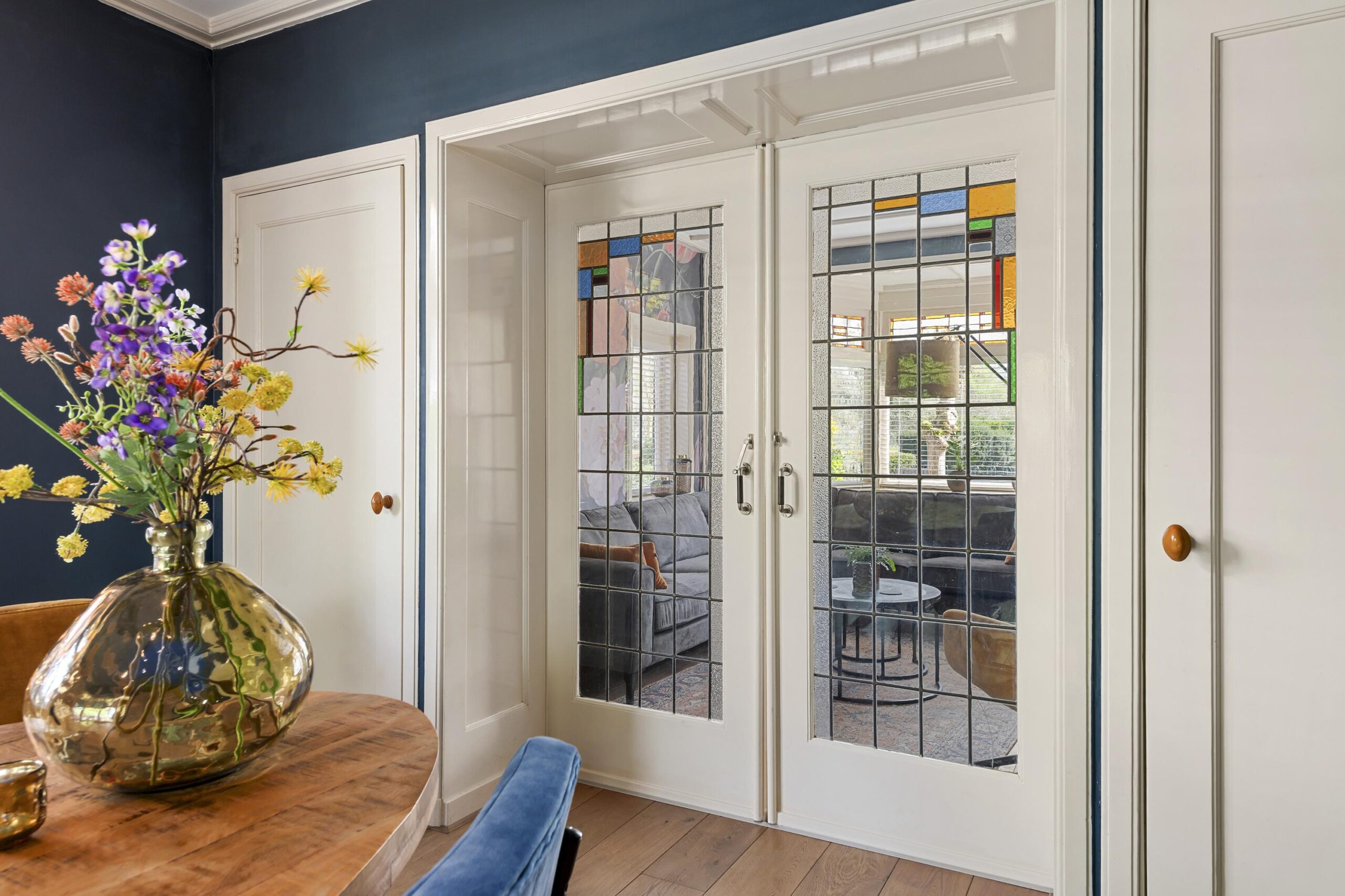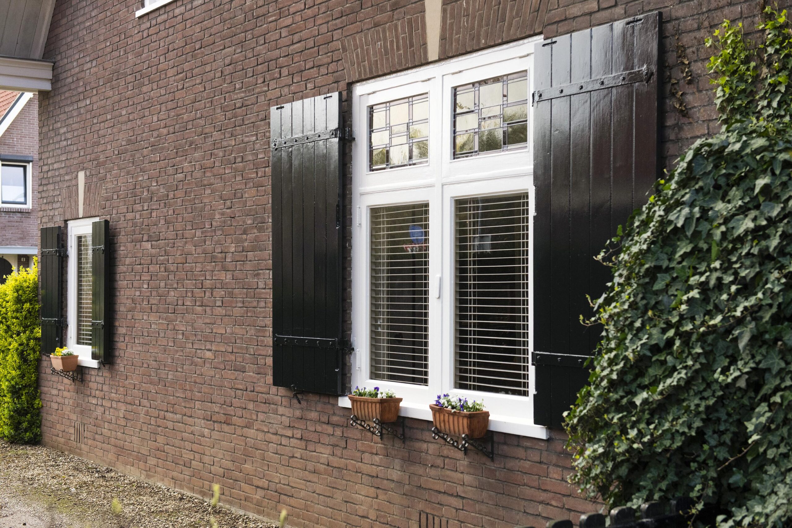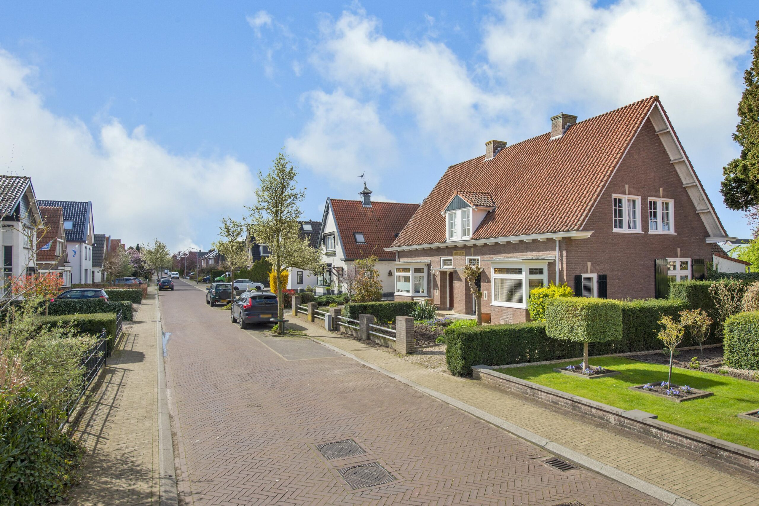 Deze bijzondere woning, gebouwd in 1939, ademt historie en klasse. Talrijke originele stijlelementen zijn met zorg behouden gebleven, waaronder de indrukwekkende woonkamer-en-suite met glas-in-lood schuifdeuren, authentieke schouwen, paneeldeuren en een originele servieskast in de keuken. Een uniek historisch detail vormt de letter ‘K’ in de voorgevel, een subtiele verwijzing naar de kelder, die tijdens de Tweede Wereldoorlog dienstdeed als schuilruimte.