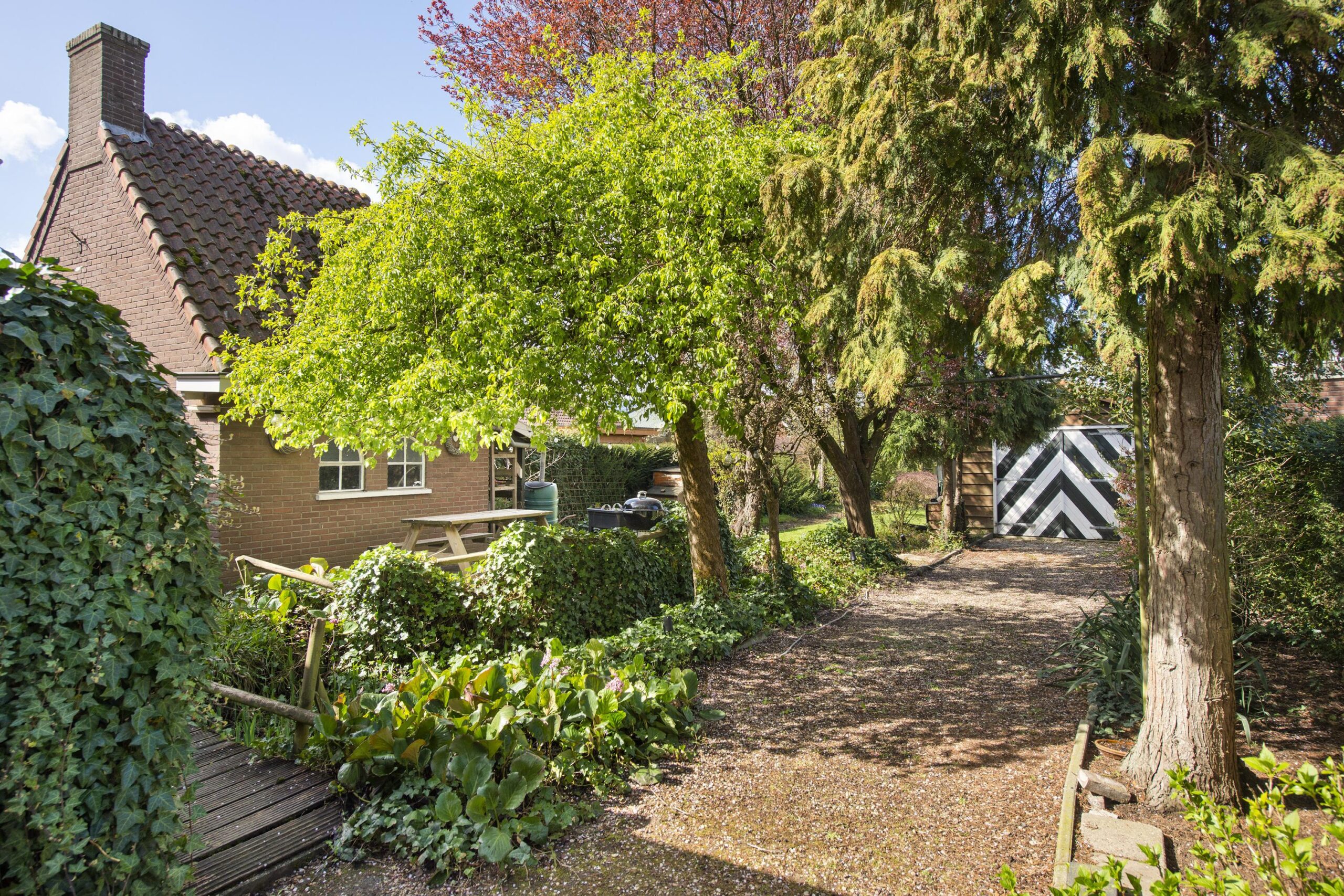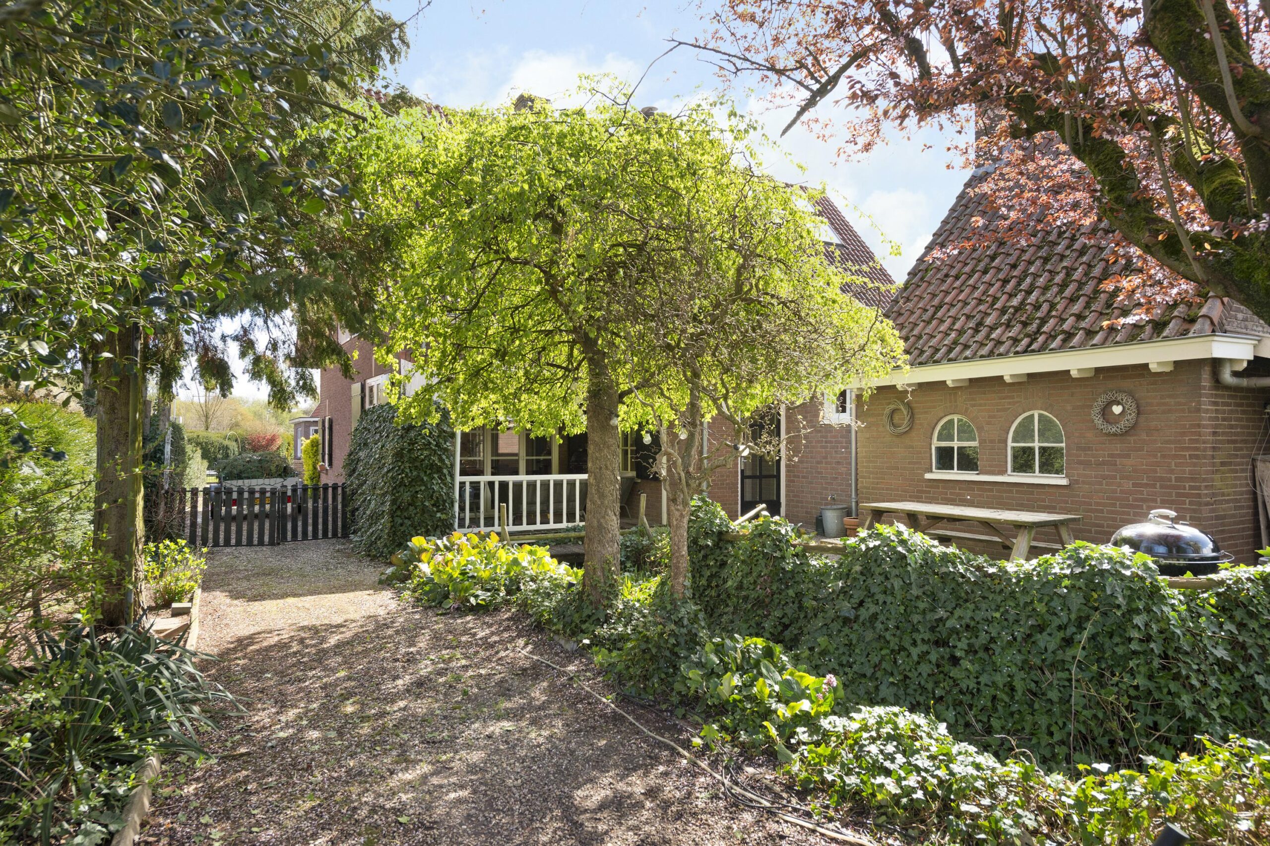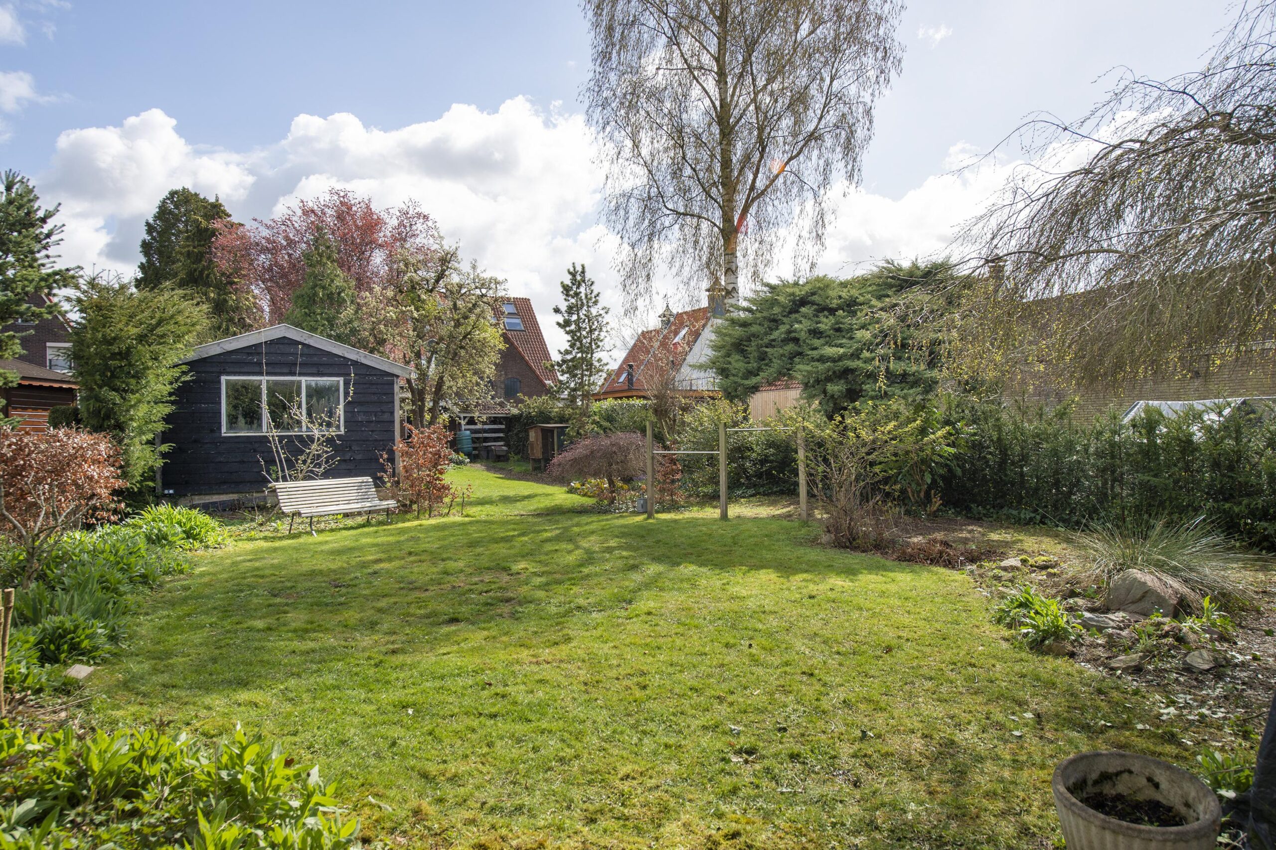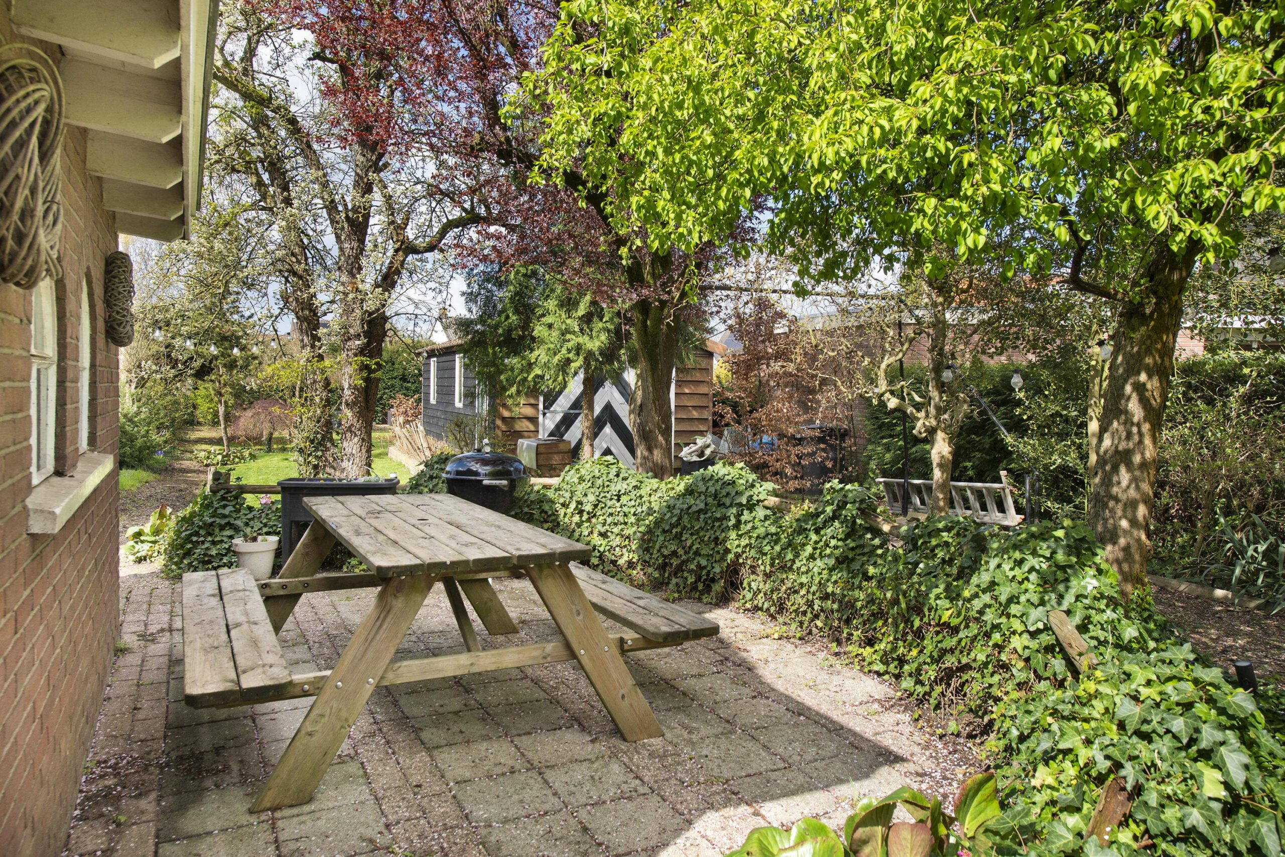 De diepe, fraai aangelegde achtertuin op het westen van circa 45 meter biedt een oase van rust en privacy. De tuin beschikt over meerdere terrassen, zonnige plekken en schaduwrijke zones. De aanwezigheid van een ruime garage, een praktische berging met vlizozolder, een oprit en een sfeervolle veranda maken het geheel compleet.