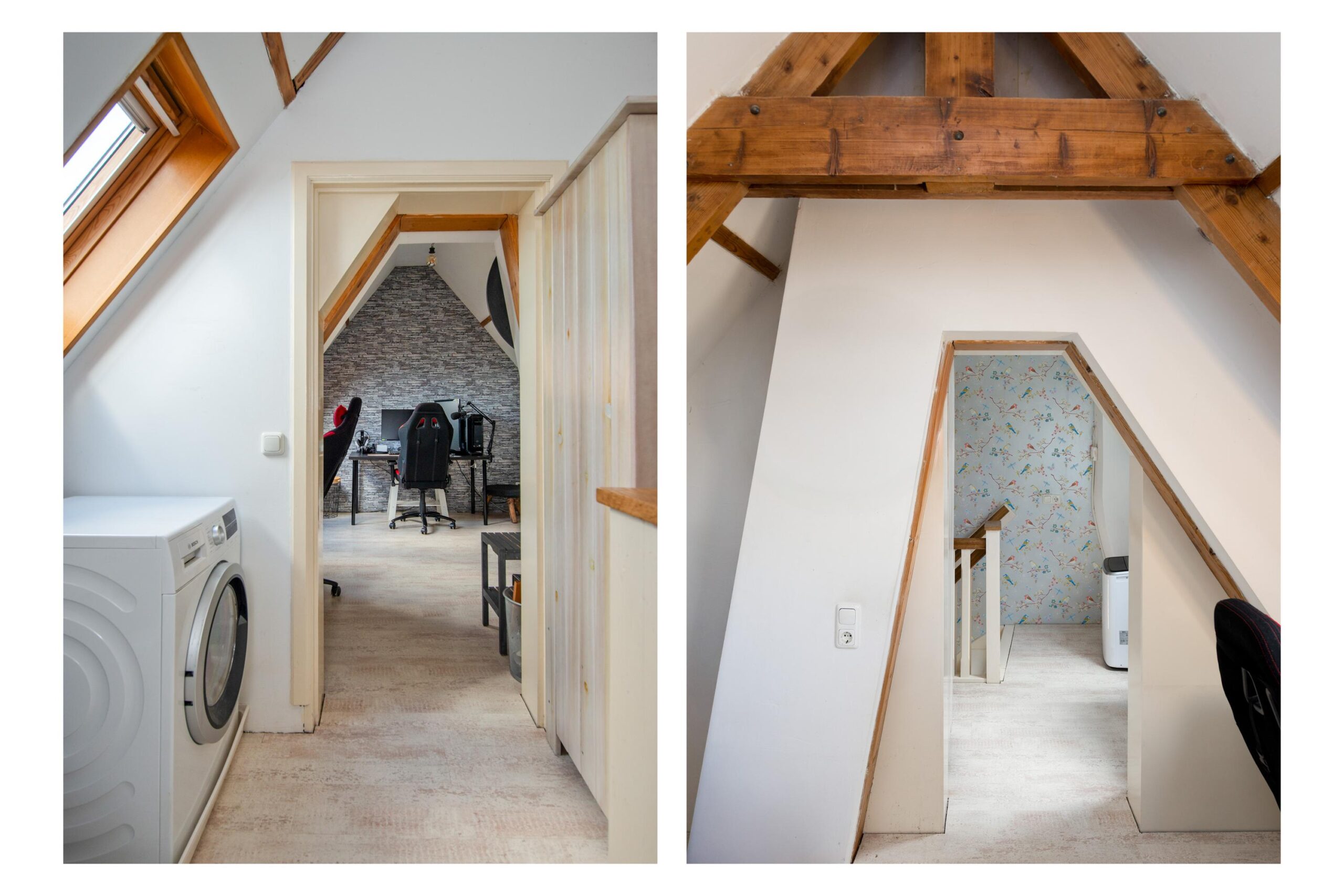 2e Verdieping: voorzolder met aansluitingen voor de wasmachine/droger en de cv-installatie (Remeha, 2007), doorloop naar de ruime 3e slaapkamer voorzien van 2 Velux dakramen.